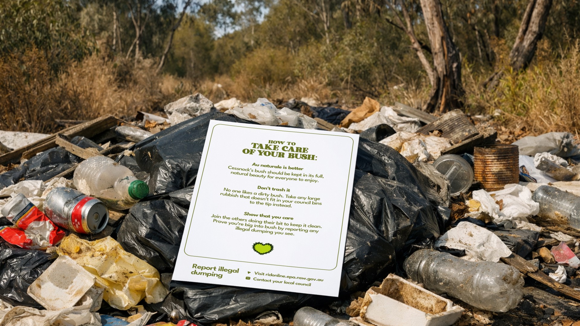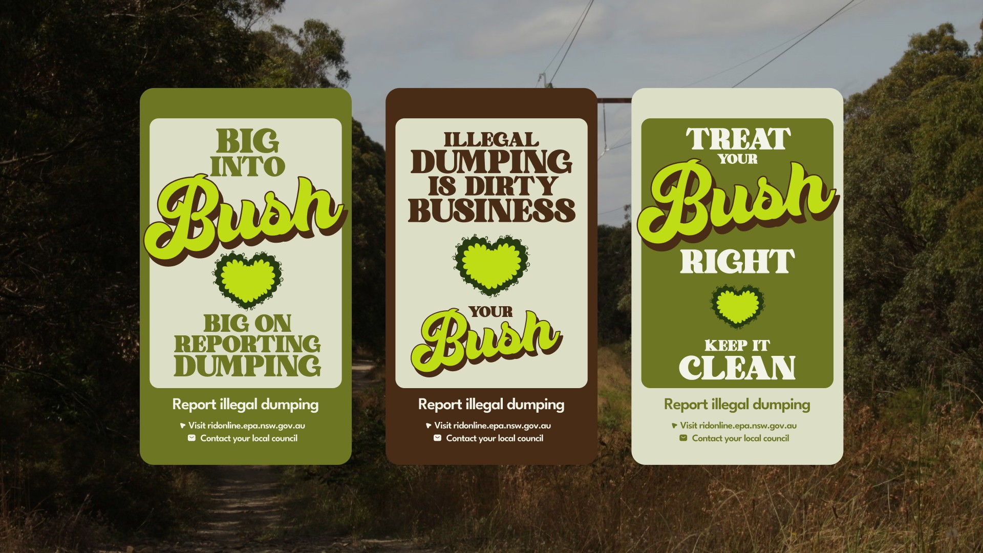 Cessnock Council was facing a growing issue with illegal dumping across its bushland, damaging the environment and placing increasing pressure on council resources. To shift community attitudes and encourage reporting, we developed Big Into Bush—a cheeky, locally resonant behaviour-change campaign designed to spark pride and protection for Cessnock’s natural landscape. Leaning into playful double entendres and nostalgic 70s-inspired creative, the campaign used bold visuals and irreverent messaging to grab attention and start conversations about caring for the region’s “big, beautiful bush.” Supported by educational content, social campaigns, and community-led initiatives, the work aimed to empower locals, discourage dumping, and build a stronger sense of ownership over Cessnock’s bushland.