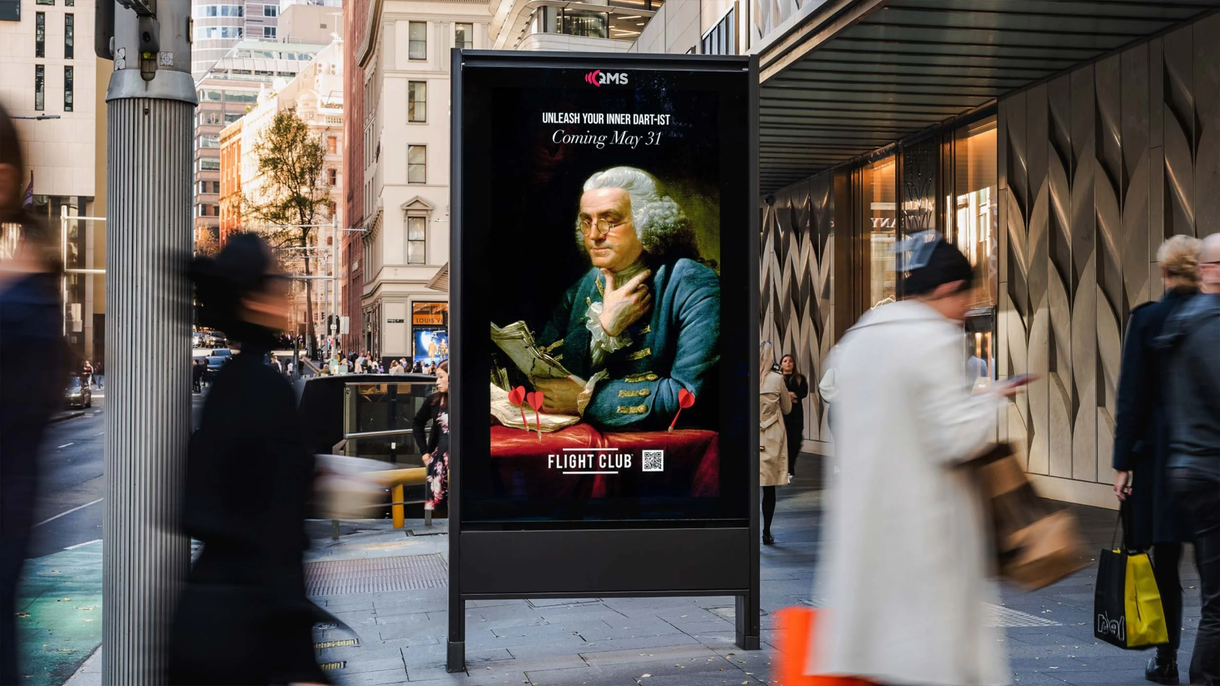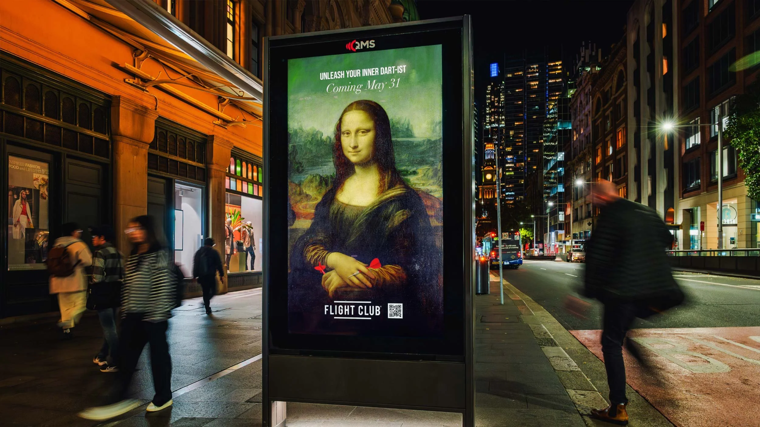 Flight Club came to us to launch their darts concept in Sydney. Our approach was simple: as Flight Club had reimagined darts in culture, we wanted to reimagine culture with darts. We turned Sydney’s CBD into a “dart gallery” with 30 designs across 80 boards. QR codes pulled in 195 scans, organic search spiked 706%, and direct traffic shot up 2296%—all in just a week.