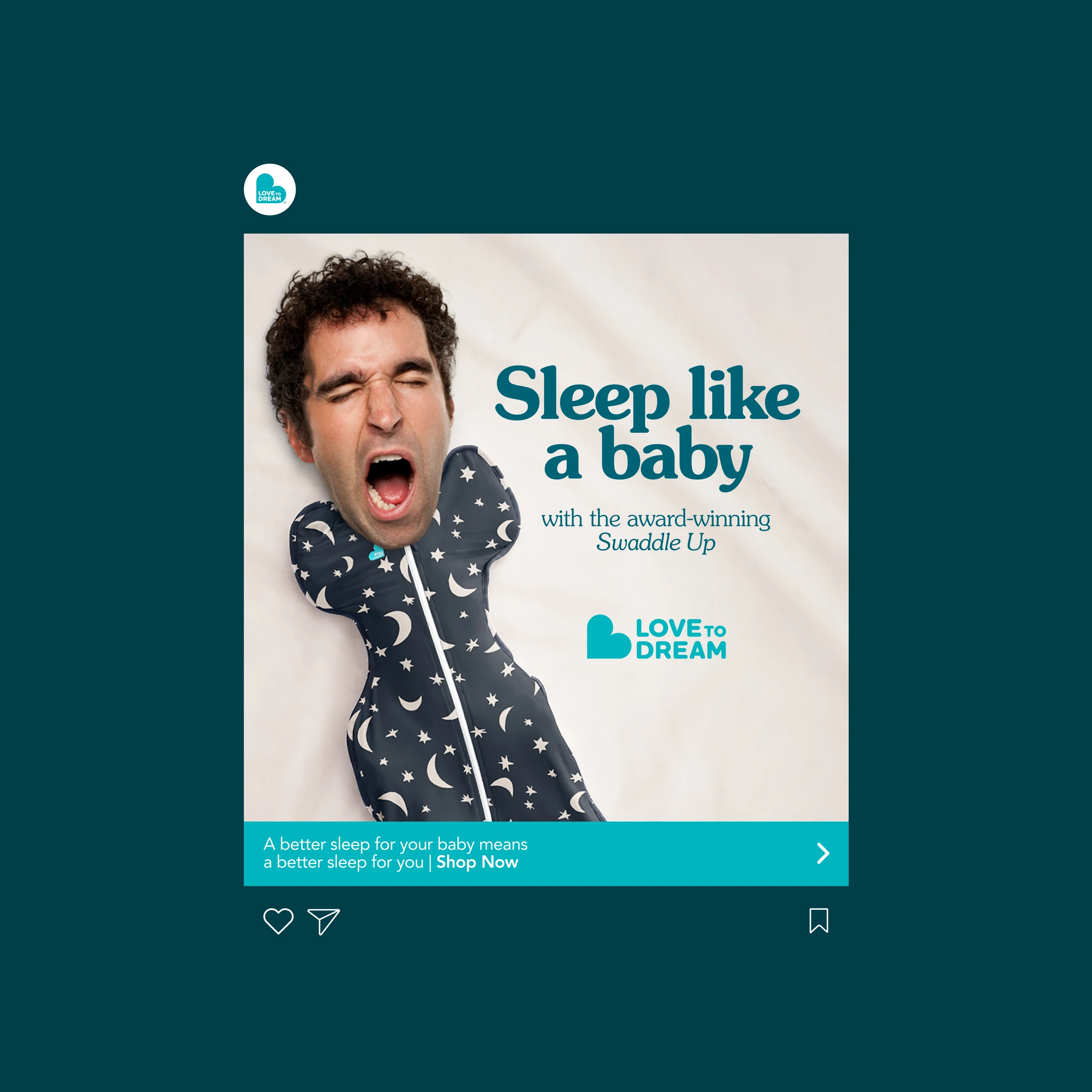 We reached out to Love to Dream because we saw an opportunity to tell a bigger story, and had a big idea to go with it. While the brand has always been about helping babies sleep better, we recognised that there’s a more profound truth: A better sleep for your baby means a better sleep for you. Launching across Meta, TikTok and Google in the US, this campaign transformed Love to Dream’s well-known Swaddle Up™ into a fun, compelling, and slightly absurd visual metaphor.