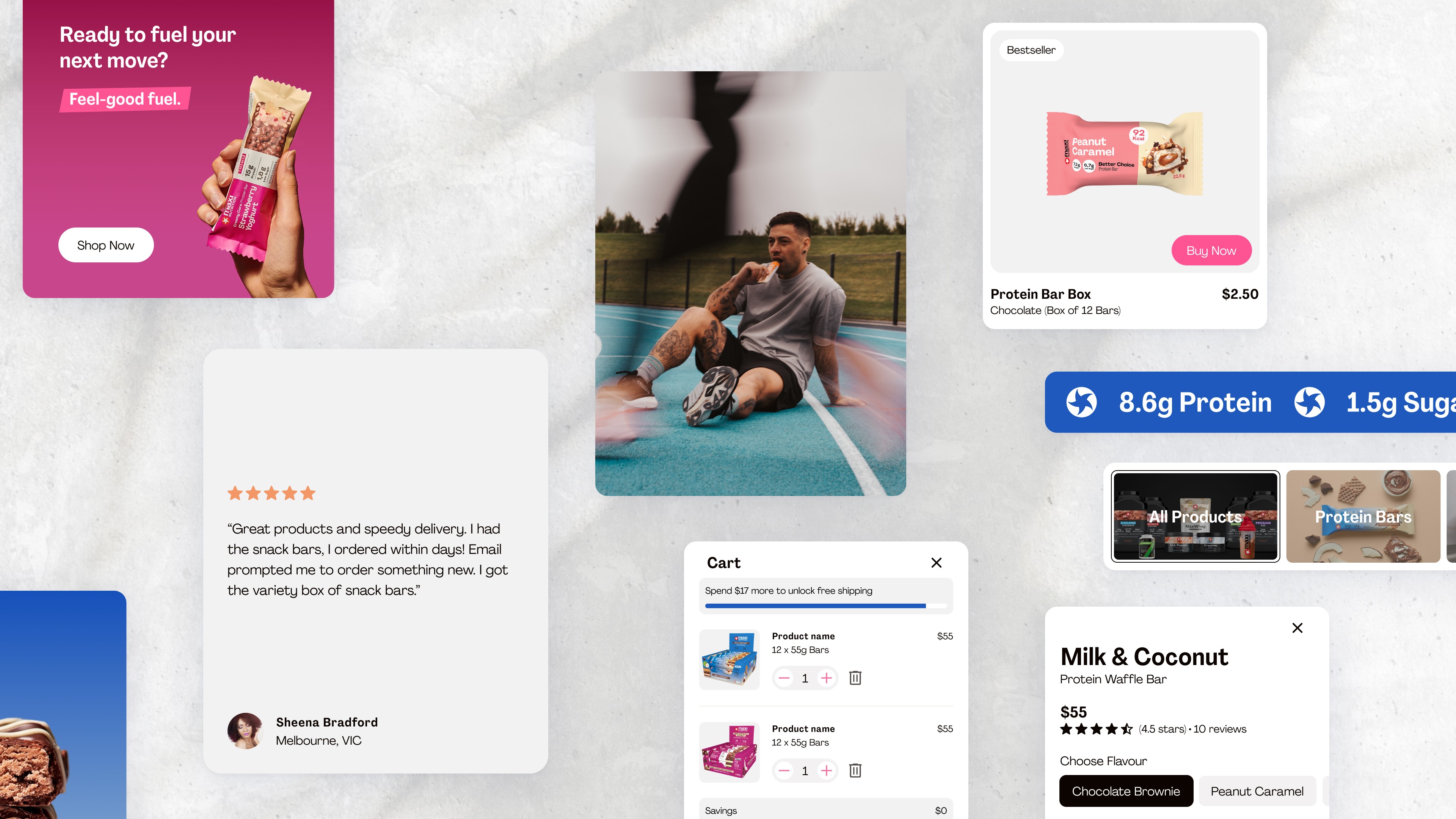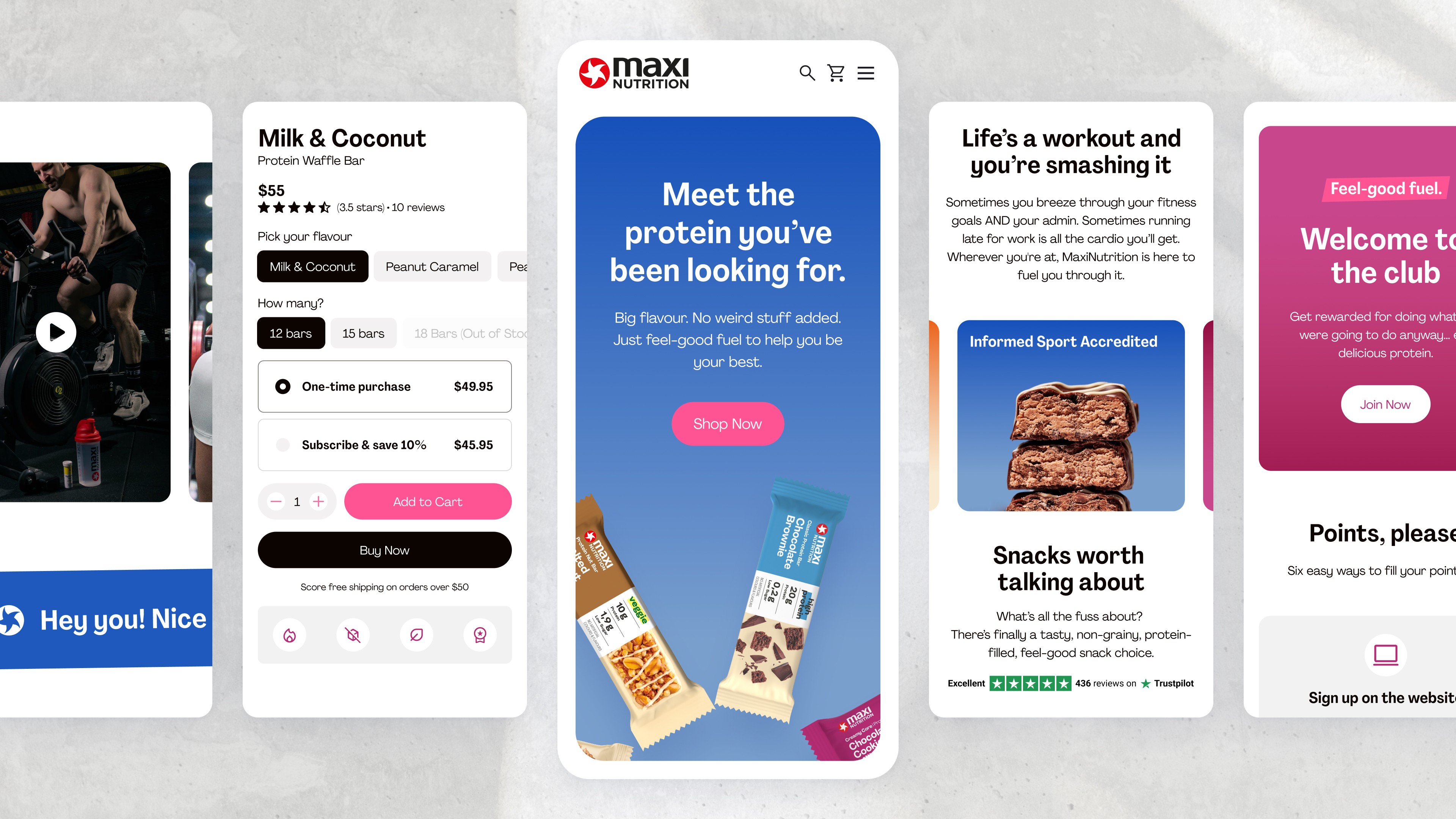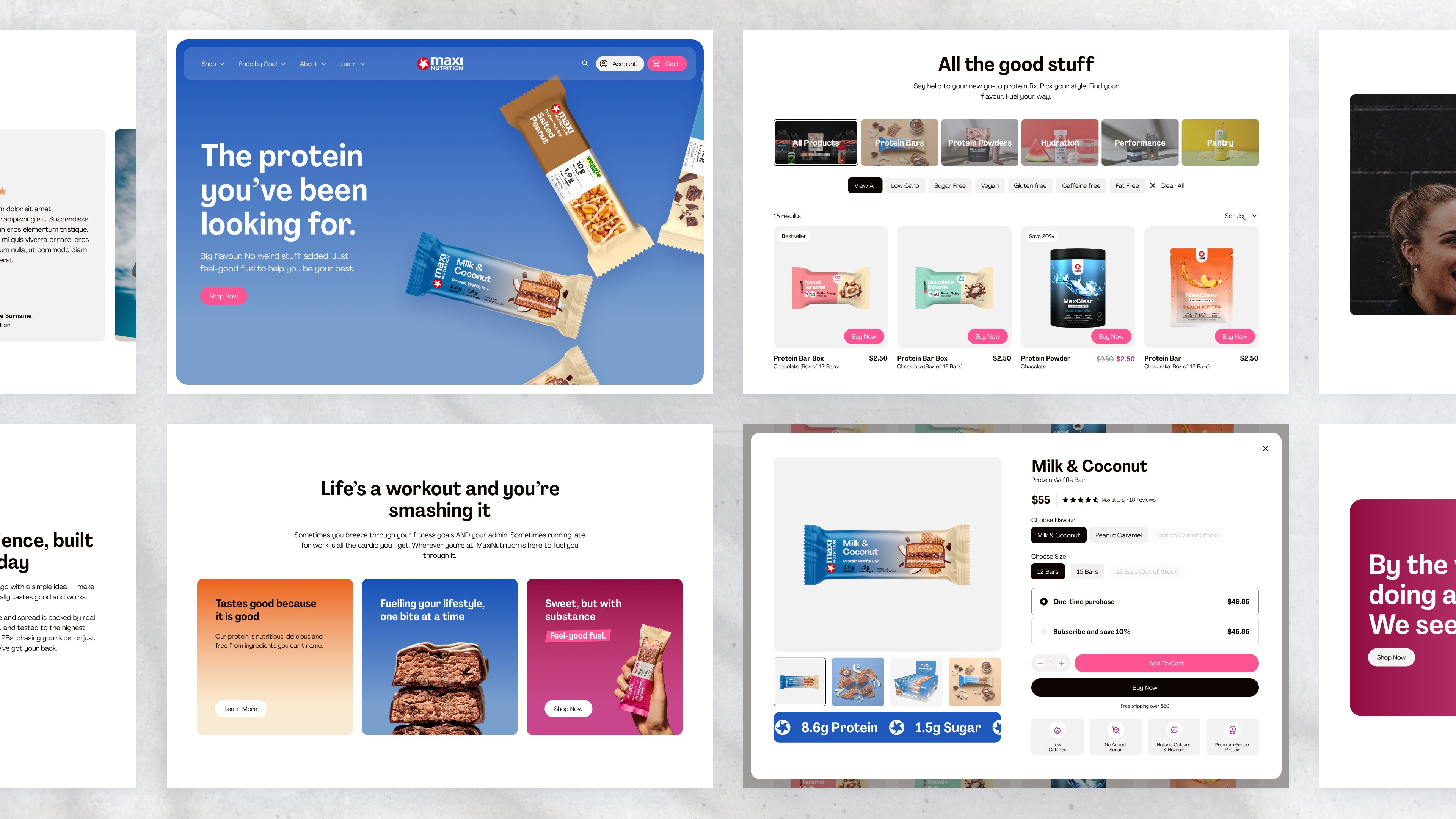 MaxiNutrition approached us to help launch in Australia. They wanted to avoid the intimidating “sports brand” look and instead connect with everyday Australians looking for tasty, nutritious fuel. We crafted a brand narrative around everyday wins, conducted user research, designed the Shopify ecommerce website optimised for local shoppers, and designed campaign assets that kept the story consistent across digital channels. The result: a brand that felt approachable, credible, and ready to grow.