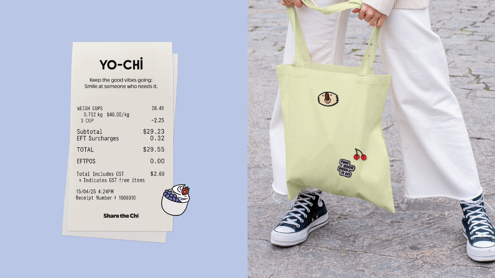 We identified Yo-Chi as a vibes business. Good vibes, fun, flavour. They also cared, a lot, but this care lacked direction. They were passionate about reducing single-use plastic, creating ethical supply chains, and sourcing quality ingredients — yet without direction and rigour, those efforts lacked clarity. They needed to stand for more. Vibes are temporary, and in today’s culture of suspicion, they can even undermine the real good being done by a brand as disingenuous. To build something lasting, our strategy shifted Yo-Chi from chasing atmosphere to creating action. Reframed as The Positive Action Company, “Share the Chi” became a discipline: turning positivity into intent, and intent into impact.